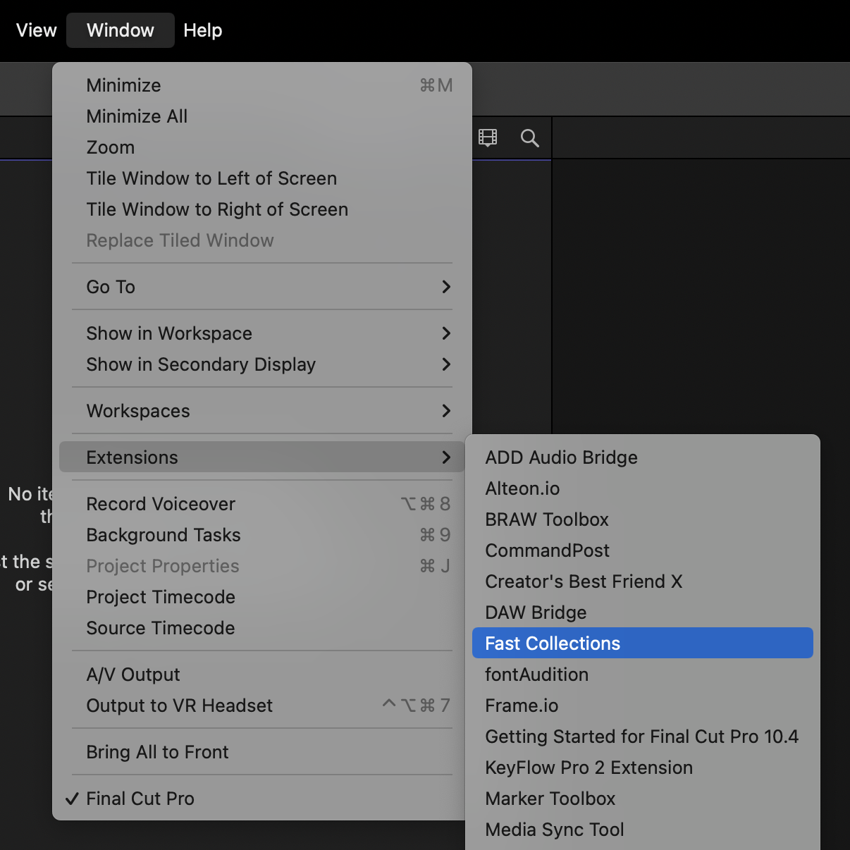 You can now access the Fast Collections Workflow Extension via the Window > Extensions > Fast Collections menubar item: